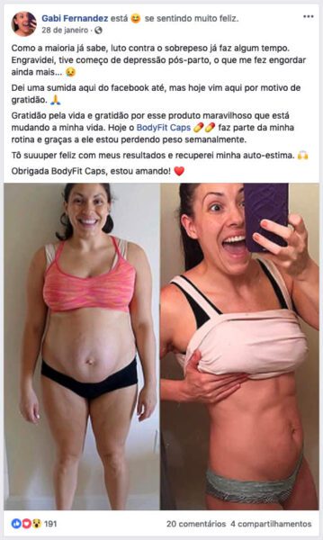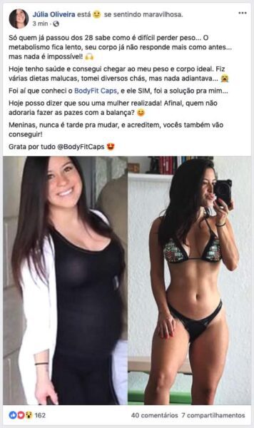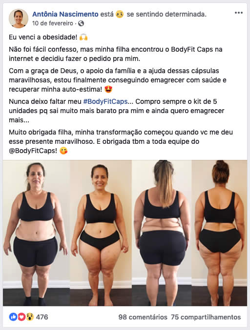 Sem a menor sombra de dúvidas, o Body Fit Caps é realmente muito eficiente e benéfico para quem o utiliza. A maior prova disso é a grande quantidade de pessoas que já utilizou o suplemento e hoje está completamente feliz com o seu corpo.